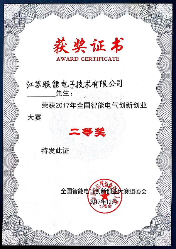 2017全國智能電氣創(chuàng)新創(chuàng)業(yè)大賽二等獎(jiǎng)