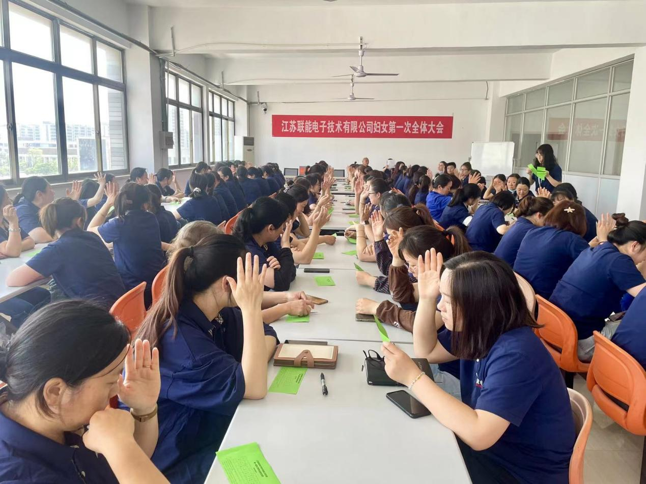 2024年5月23日下午,Dafa888手機版登錄召開第一次婦女全體大會,選舉產生婦女聯合會第一屆執(zhí)行委員會主席、副主席及委員。揚州城北街道婦聯主席竇雪出席會議,Dafa888手機版登錄電子98名女性職工到場參加了大會。