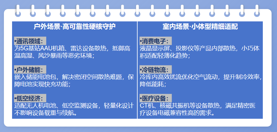 傳統(tǒng)風(fēng)扇在工業(yè)設(shè)備小型化、場景復(fù)雜化的趨勢下,早已痛點盡顯—— 戶外易壞、體積大、功耗高、噪音及電磁干擾嚴(yán)重……